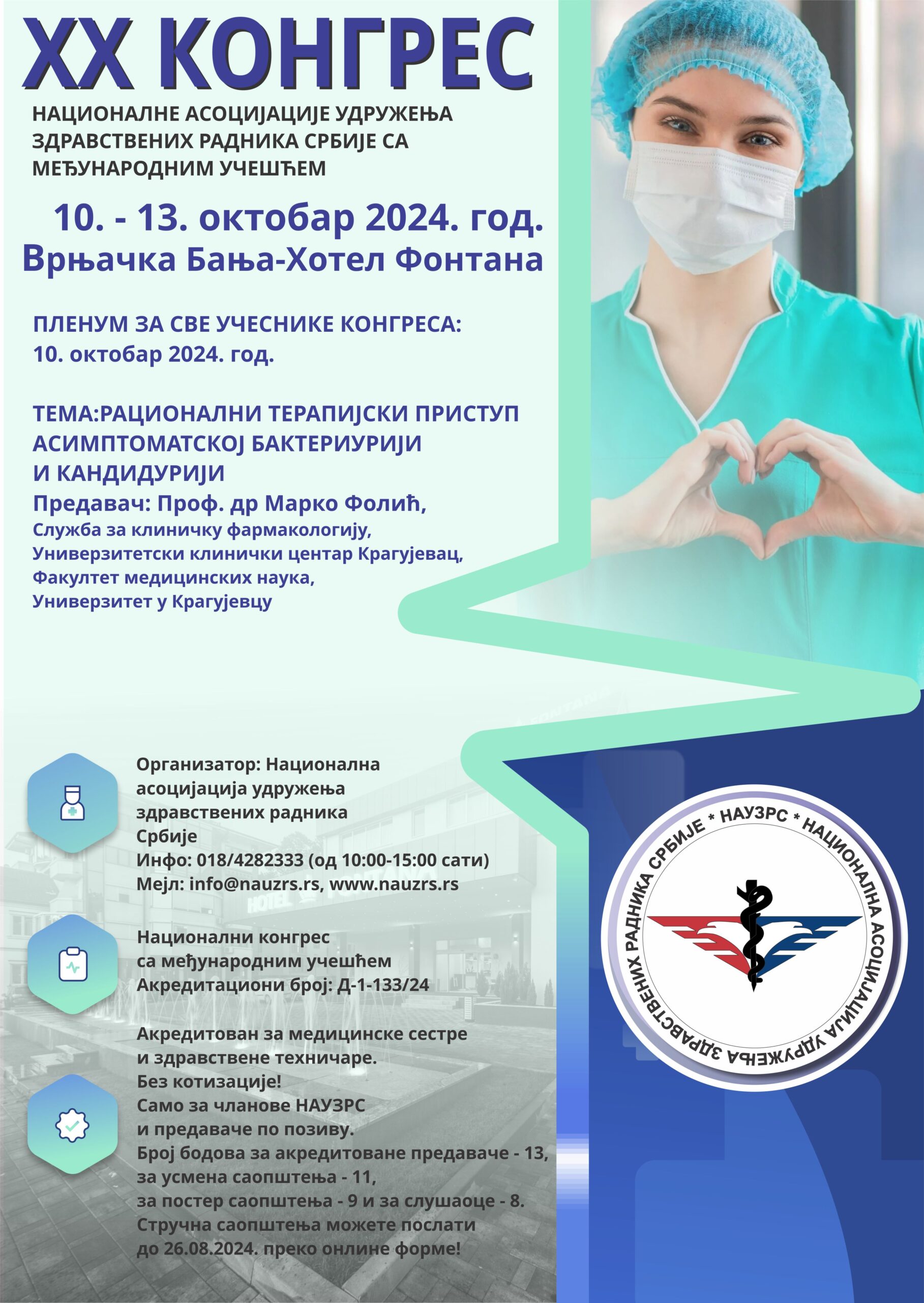 Слање радова – XX конгрес Прво обавештење – XX конгрес Поштоване колегинице и колеге, Са великим задовољством вас позивамо на јубиларни XX Конгрес Националне асоцијације удружења здравствених радника Србије који ће се одржати у Врњачкој Бањи од 10. до 13. октобра 2024. године. Овај конгрес представља изузетну прилику да се окупе стручњаци из разних области […]