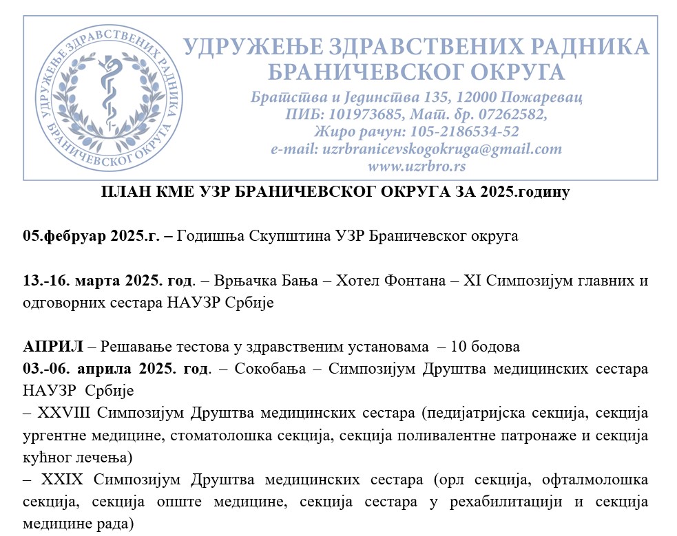 ДетаљнијеПЛАН КМЕ УЗР БРАНИЧЕВСКОГ ОКРУГА ЗА 2025.годину